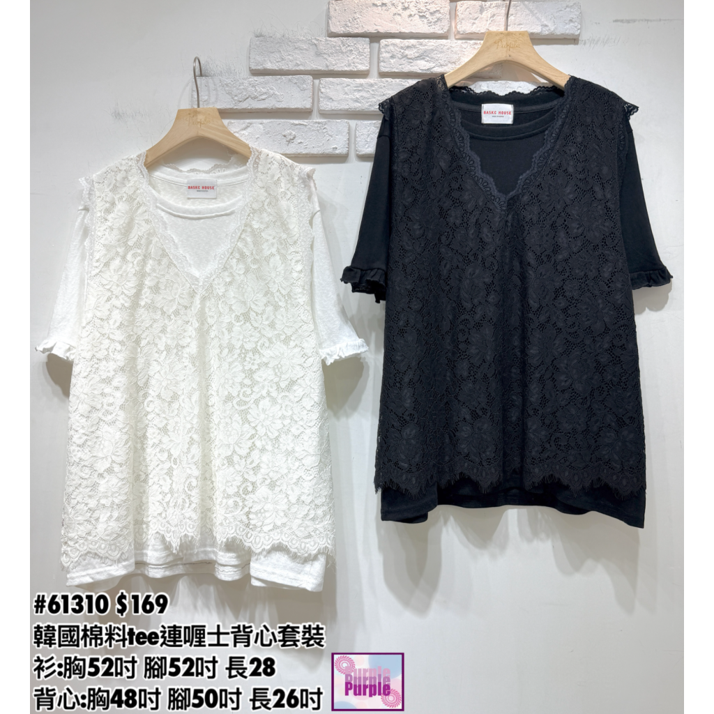 主頁 (訂貨大約20天) #61310 韓國棉料tee連喱士背心套裝 (衫:胸52吋 腳52吋 長28吋/背心:胸48吋 腳50吋 長26吋)