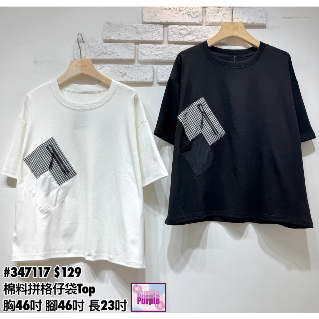 主頁 (訂貨約20天) #347117 棉料拼格仔袋Top (胸46吋 腳46吋 長23吋)