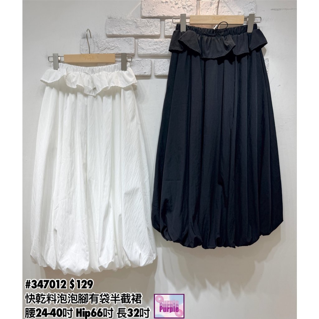 (訂貨約20天) #347012 橡筋腰快乾料泡泡腳有袋半截裙 (腰24-40吋 Hip66吋 長32吋)