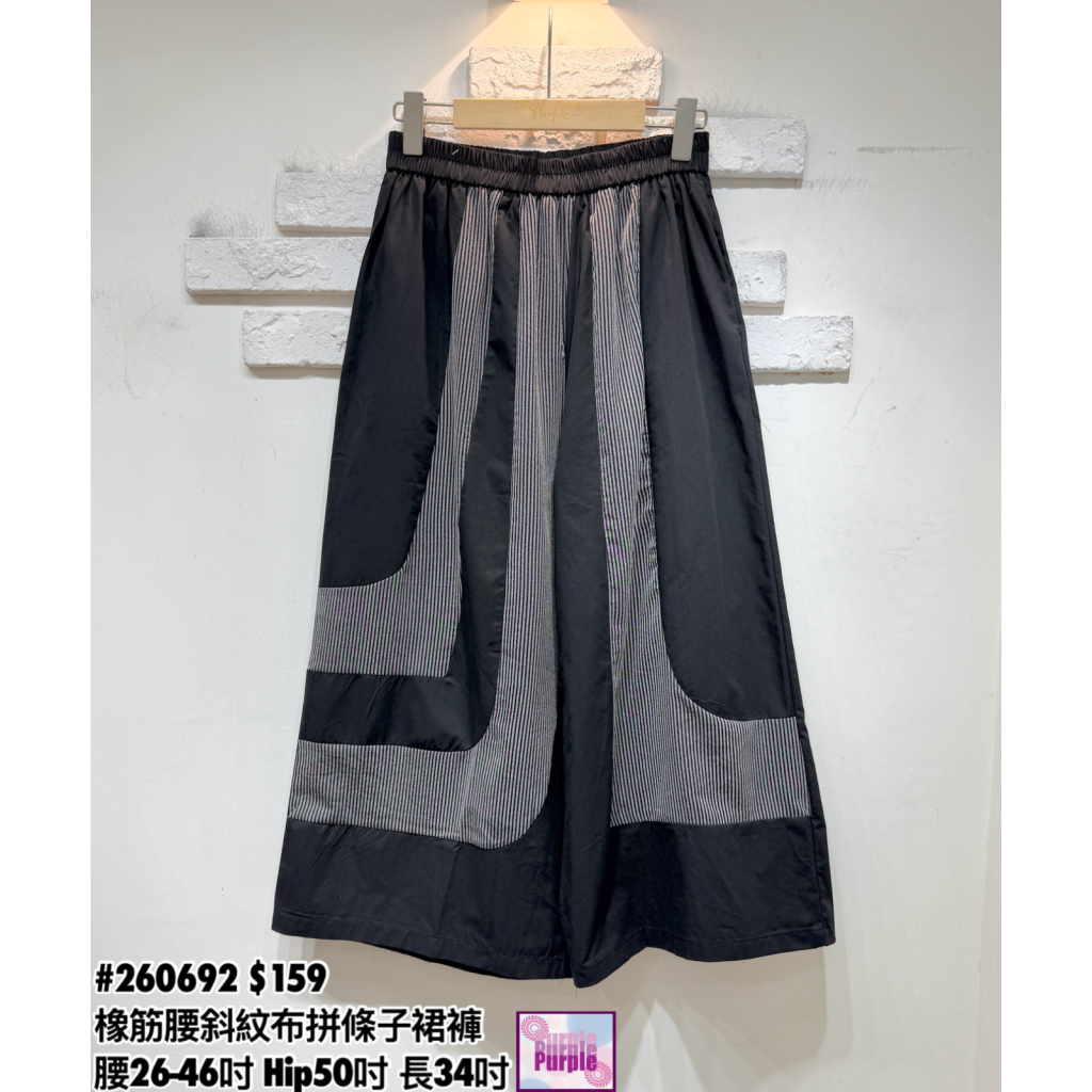 (訂貨約20天) #260692 橡筋腰斜紋布拼條子裙褲 (腰26-46吋 Hip50吋 長34吋)