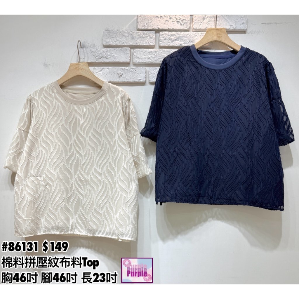 (訂貨約20天) #86131 棉料拼壓紋布料Top (胸46吋 腳46吋 長23吋)