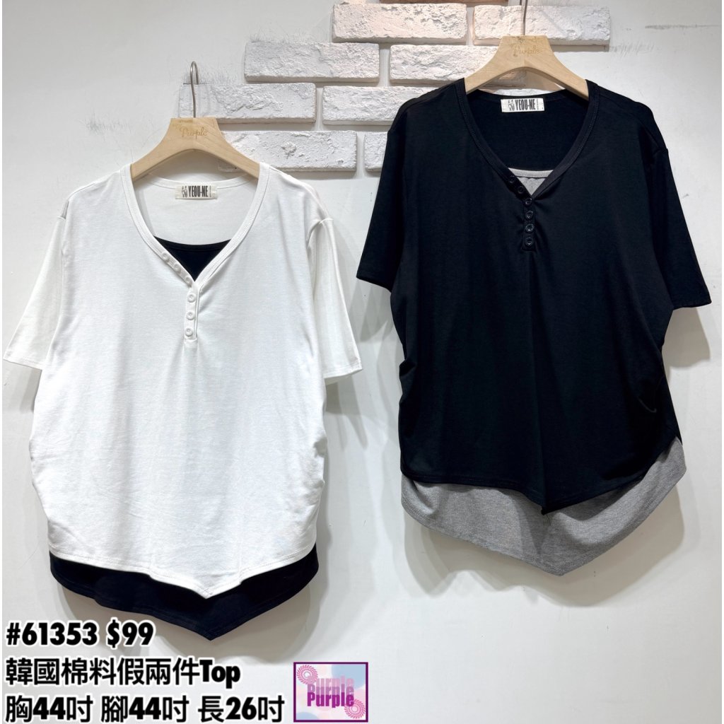 (訂貨約20天) #61353 韓國棉料假兩件Top (胸44吋 腳44吋 長26吋)