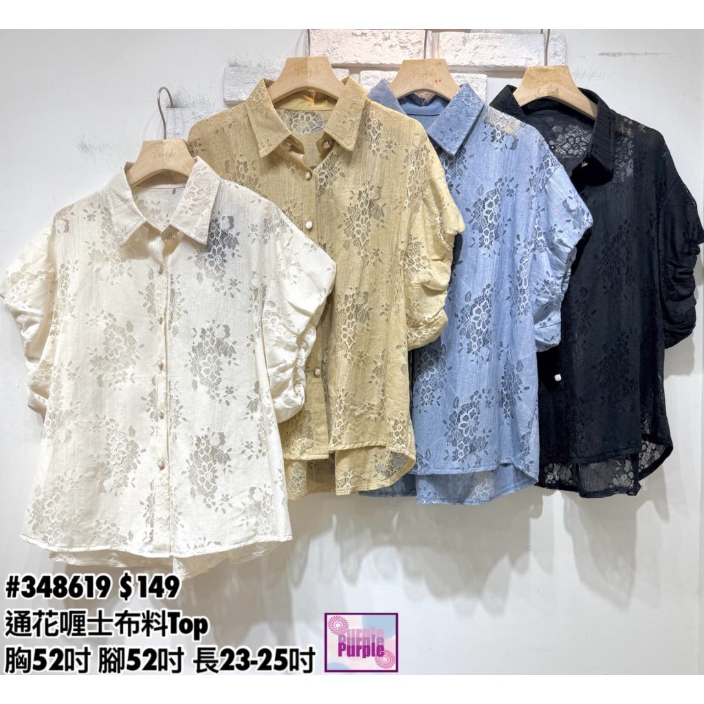 主頁 (訂貨約20天) #348619 通花喱士布料Top (胸52吋 腳52吋 長23-25吋)