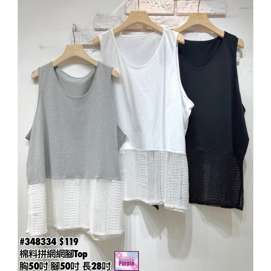 (訂貨約20天) #348334 棉料拼網網腳Top (胸50吋 腳50吋 長28吋)