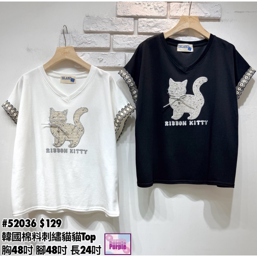 (訂貨約20天) #52036 韓國棉料拼刺繡貓貓Top (胸48吋 腳48吋 長24吋)