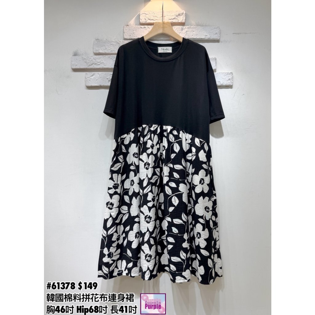 主頁 (訂貨約20天) #61378 韓國棉料拼花布連身裙 (胸46吋 Hip68吋 長41吋)