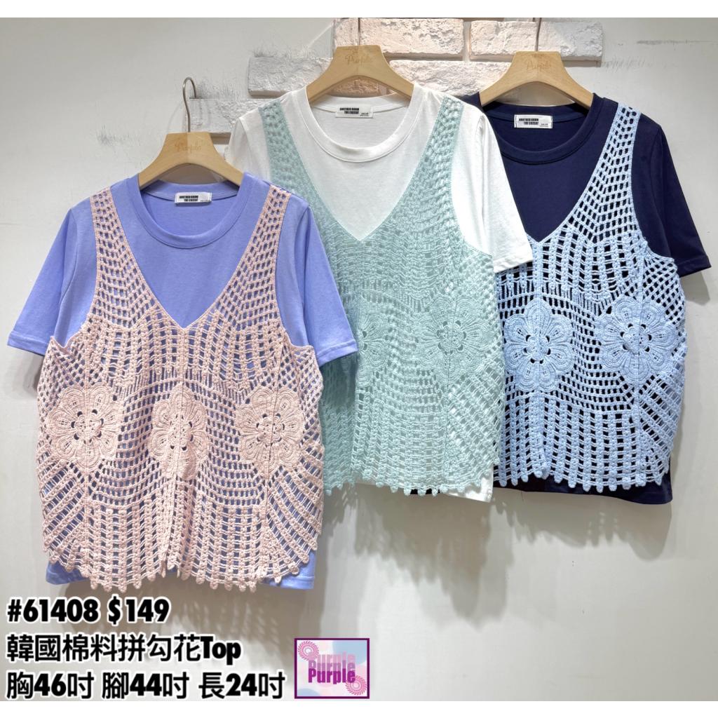 (訂貨大約20天) #61408 韓國棉料拼勾花假兩件Top (胸46吋 腳44吋 長24吋)