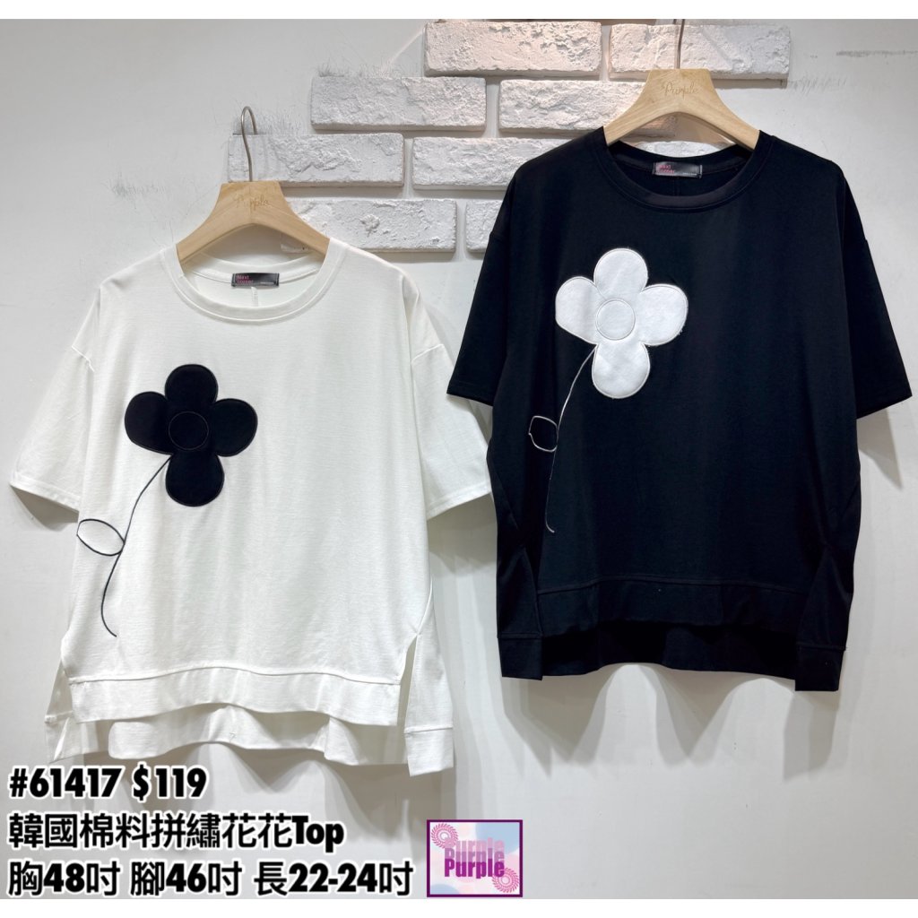 (訂貨大約20天) #61417 韓國棉料拼繡花花Top (胸48吋 腳46吋 長22-24吋)