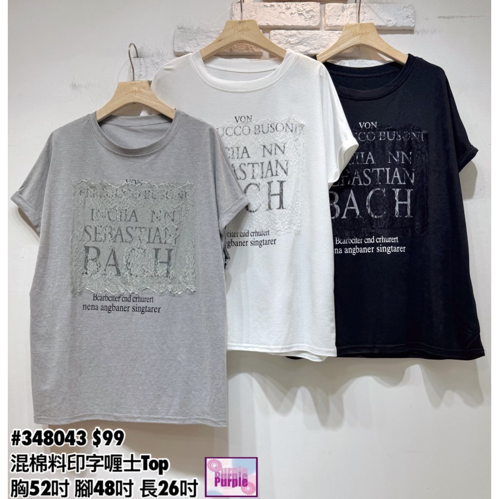 (訂貨大約20天) #348043 混棉料印字喱士Top (胸52吋 腳48吋 長26吋)