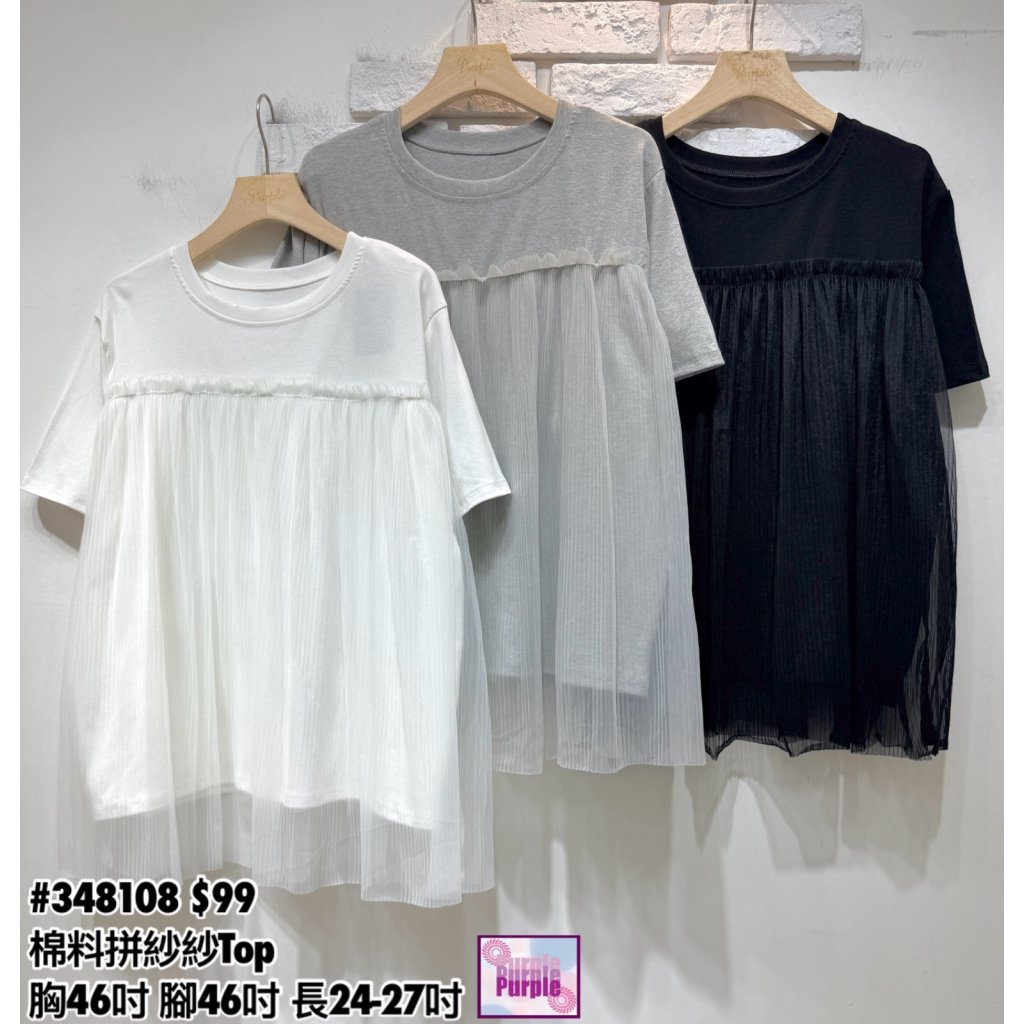 (訂貨大約20天) #348108 棉料拼紗紗Top (胸46吋 腳46吋 長24-27吋)