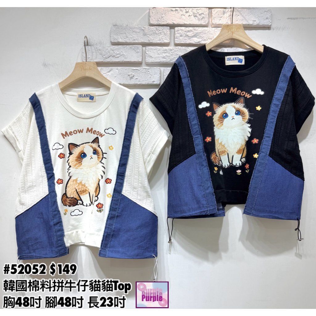 (訂貨大約20天) #52052 韓國棉料拼牛仔貓貓Top (胸48吋 腳48吋 長23吋)