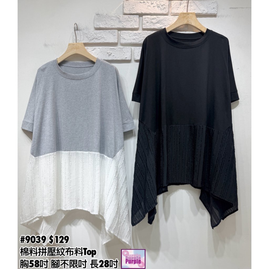 (訂貨大約20天) #9039 棉料拼壓紋布料Top (胸58吋 腳不限吋 長28吋)