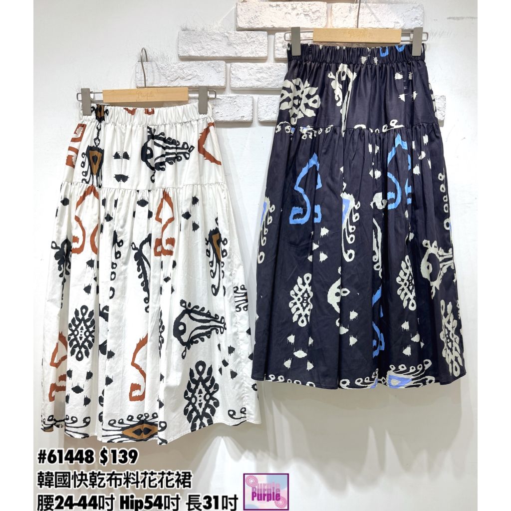 (訂貨大約20天) #61448 韓國橡筋腰快乾布料花花裙 (腰24-44吋 Hip54吋 長31吋)