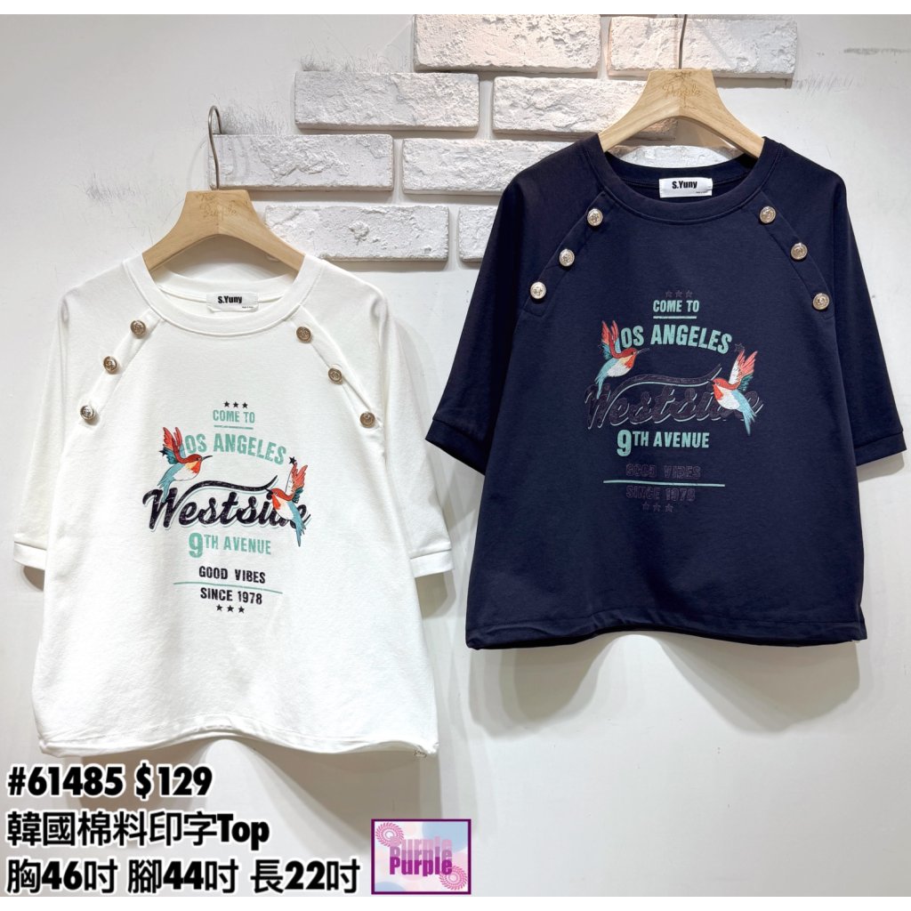 (訂貨約20天) #61485 韓國棉料印字Top (胸46吋 腳44吋 長22吋)