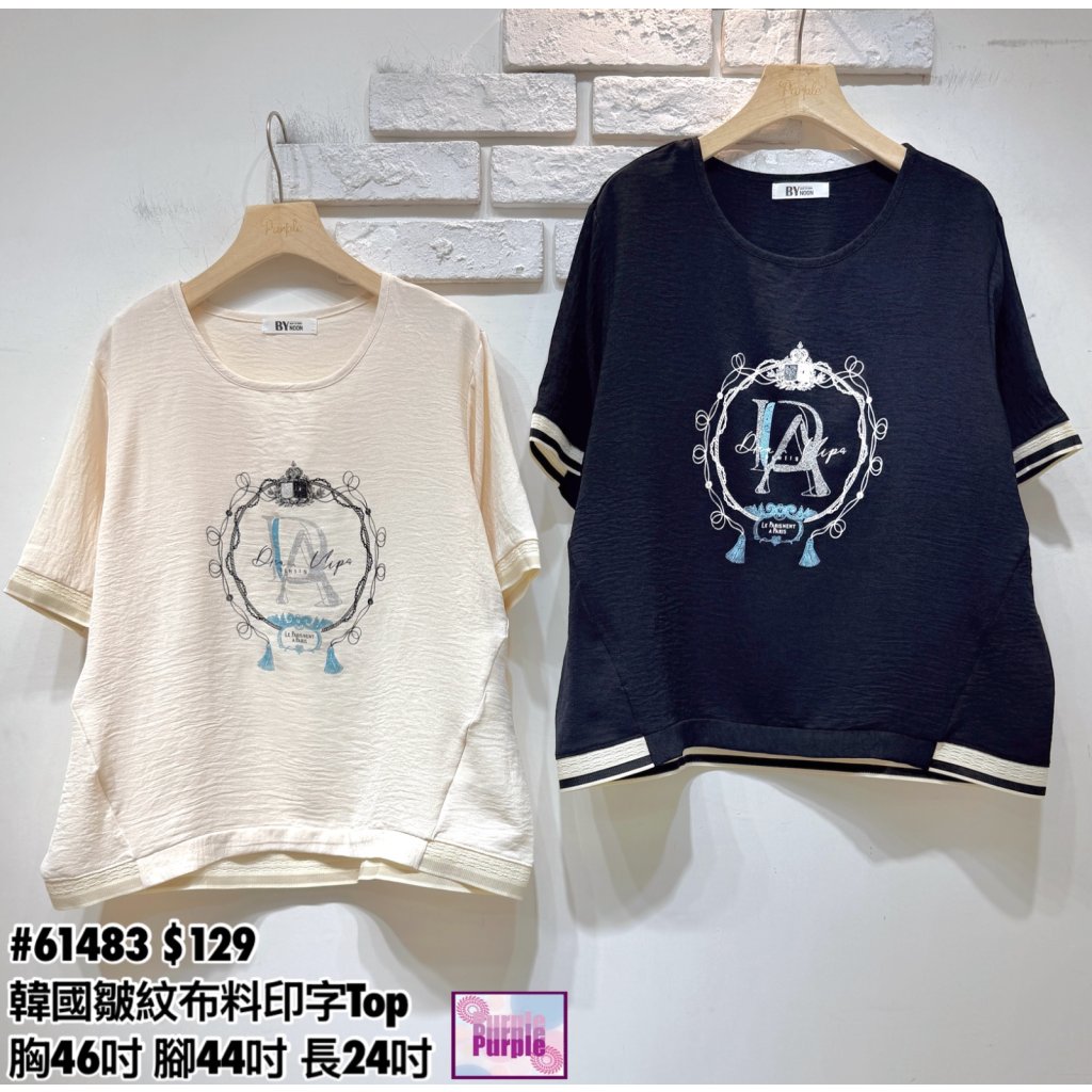 主頁 (訂貨約20天) #61483 韓國皺紋布料印字Top (胸46吋 腳44吋 長24吋)