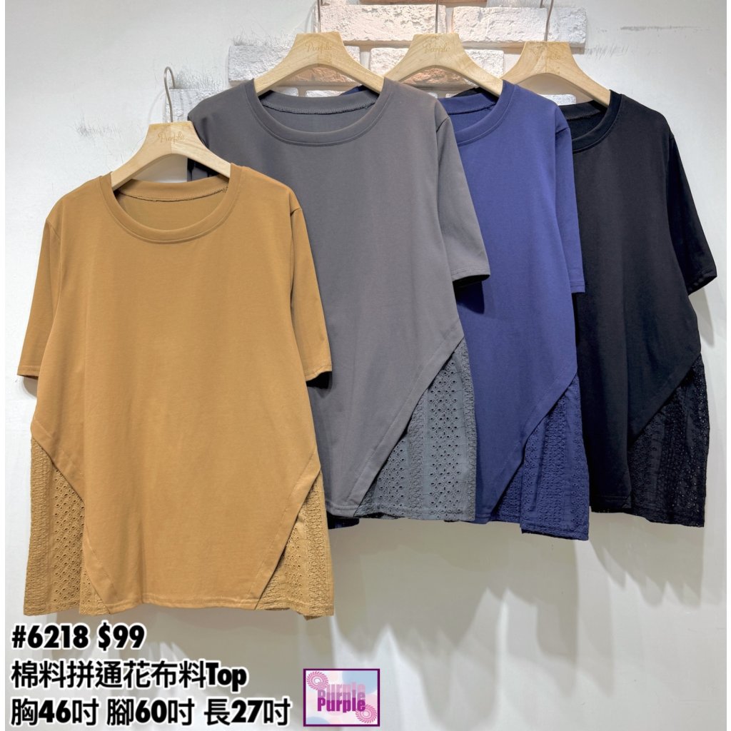 (訂貨約20天) #6218 棉料拼通花布料Top (胸46吋 腳60吋 長27吋)