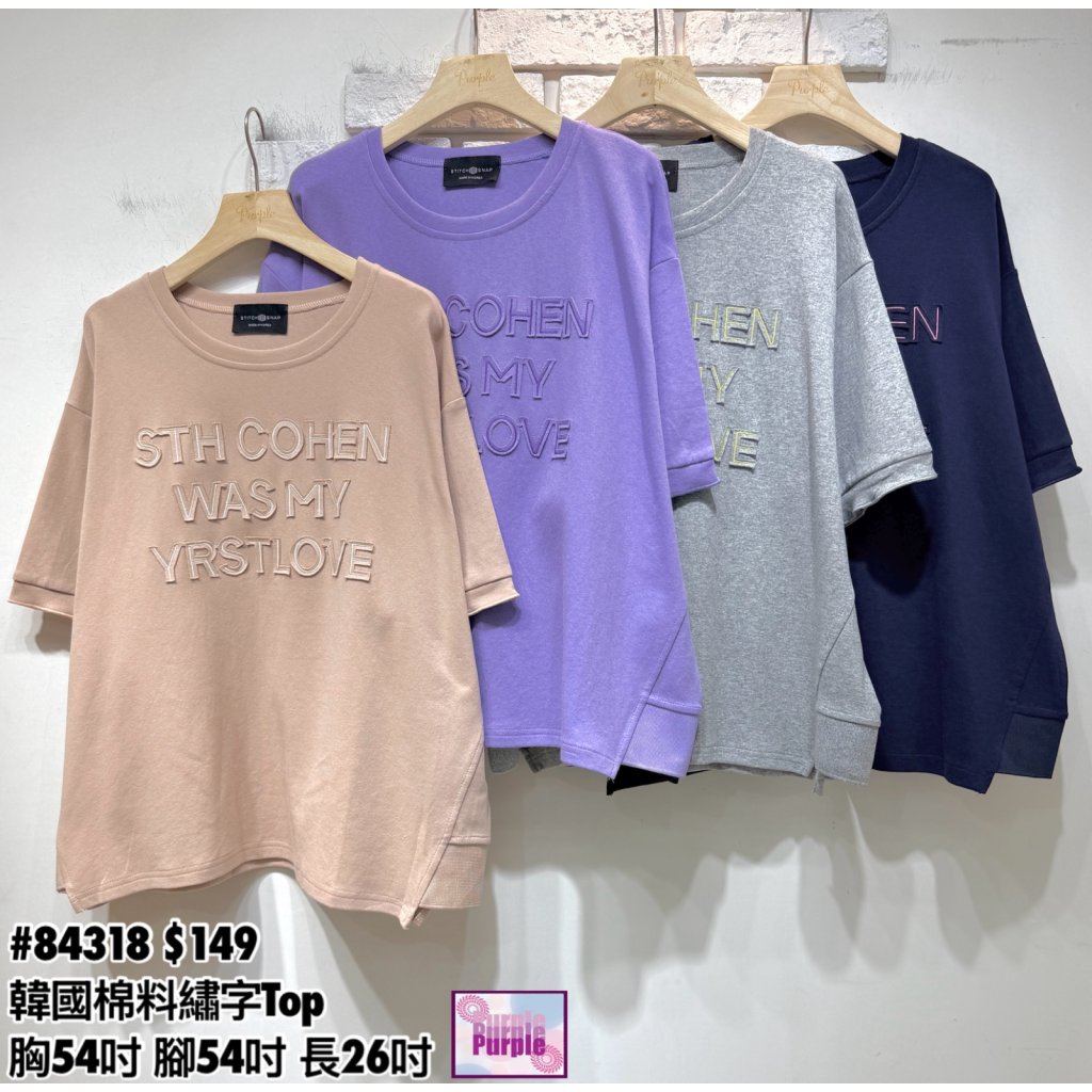 (訂貨約20天) #84318 韓國棉料繡字Top (胸54吋 腳54吋 長26吋)